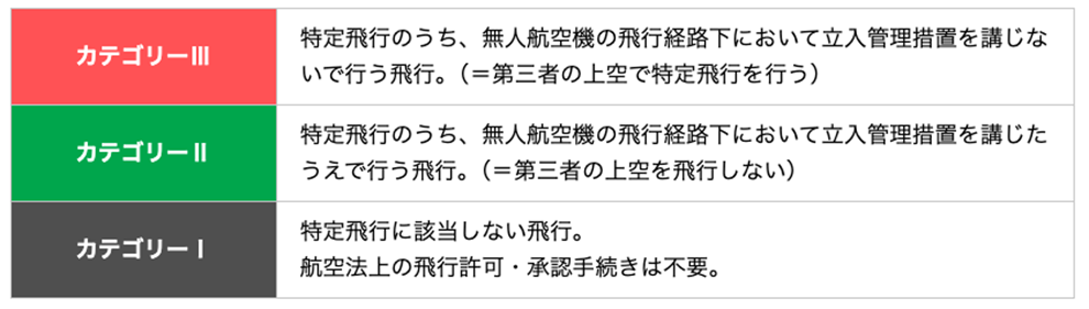 カテゴリーⅠ飛行とは、航空法上の「特定飛行」に該当しない、リスクが最も低い飛行区分のことを指します。